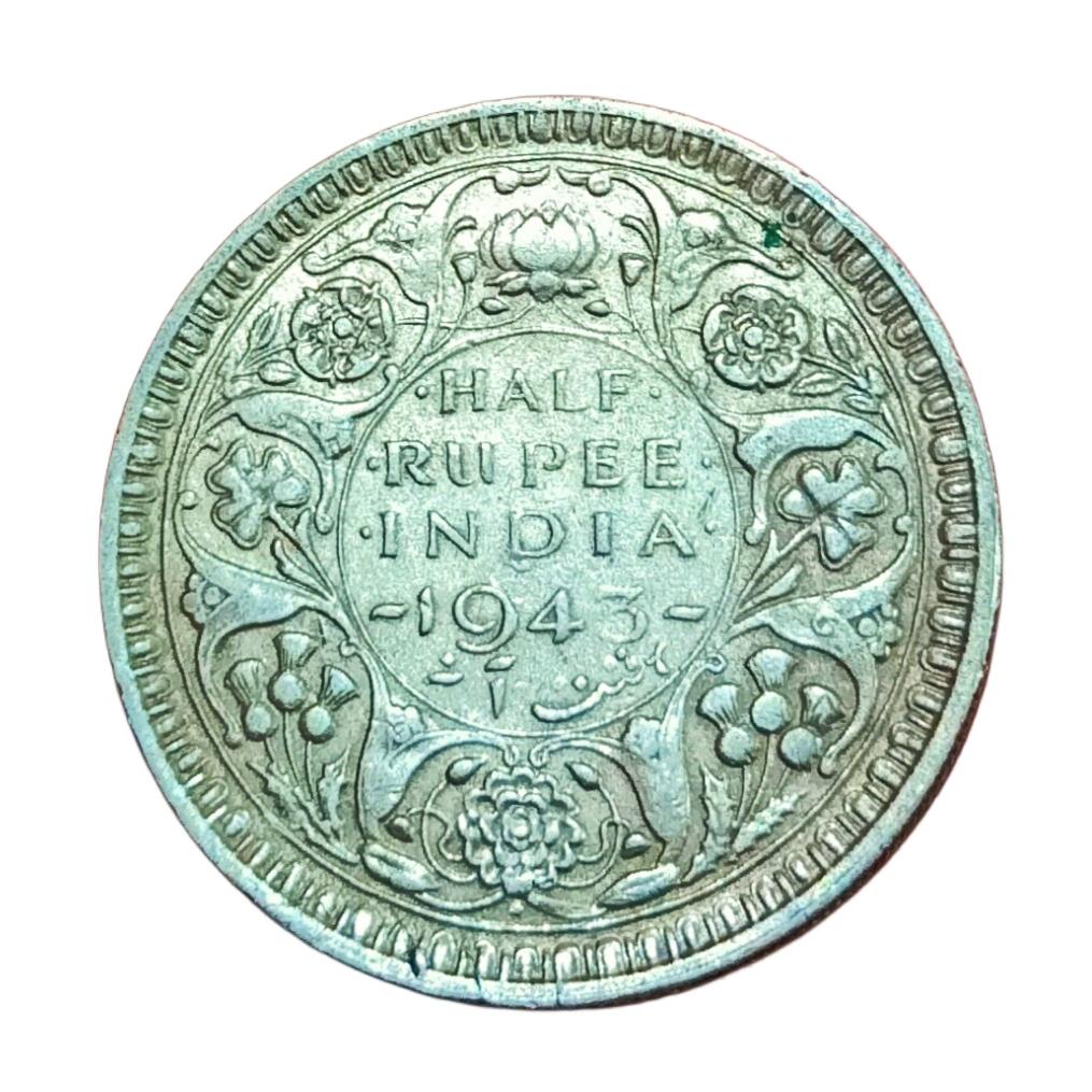 British India Silver 1/2 Rupee Year 1943 Bombay Mint King GEORGE-VI in Collectable Grade.
