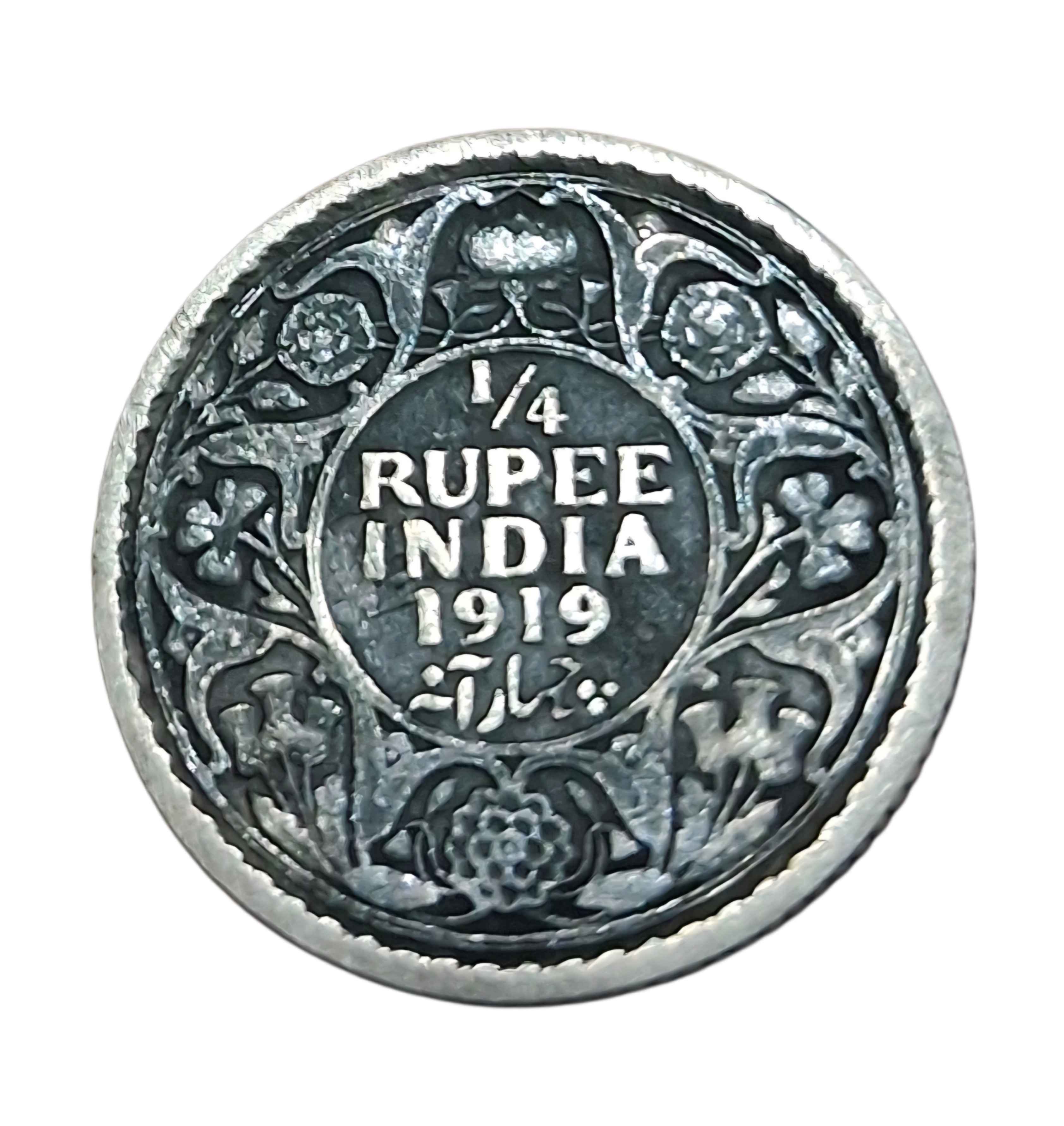 British India Silver 1/4 RUPEE Year 1919 King GEORGE-V in Collectable Grade.