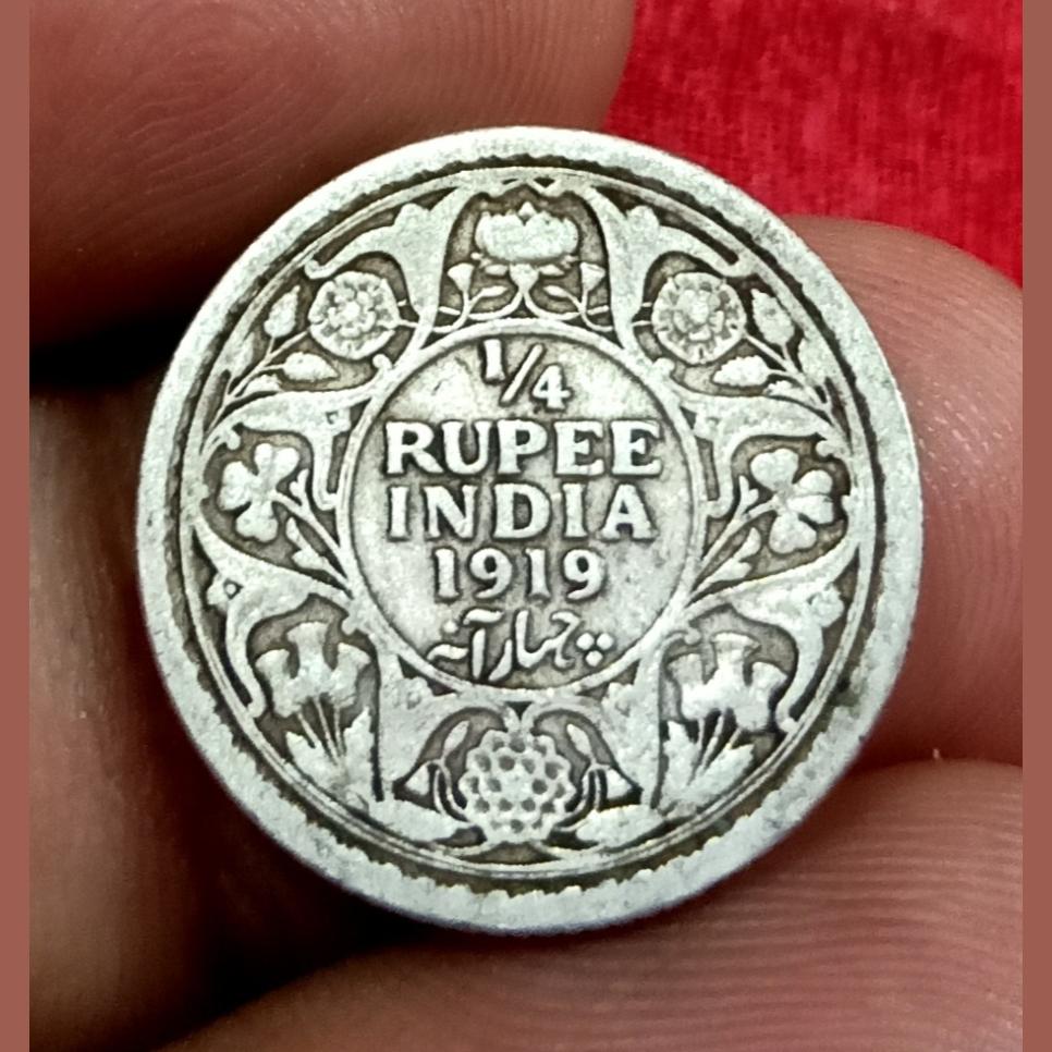 British India Silver 1/4 Rupee Year 1919 King GEORGE-V in Collectable Grade.