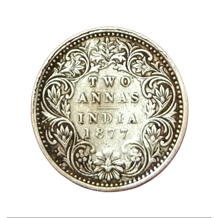 British India Silver 2 ANNA’S Key Date Year 1877 VICTORIA EMPRESS **RARE** High Collectable Grade.
