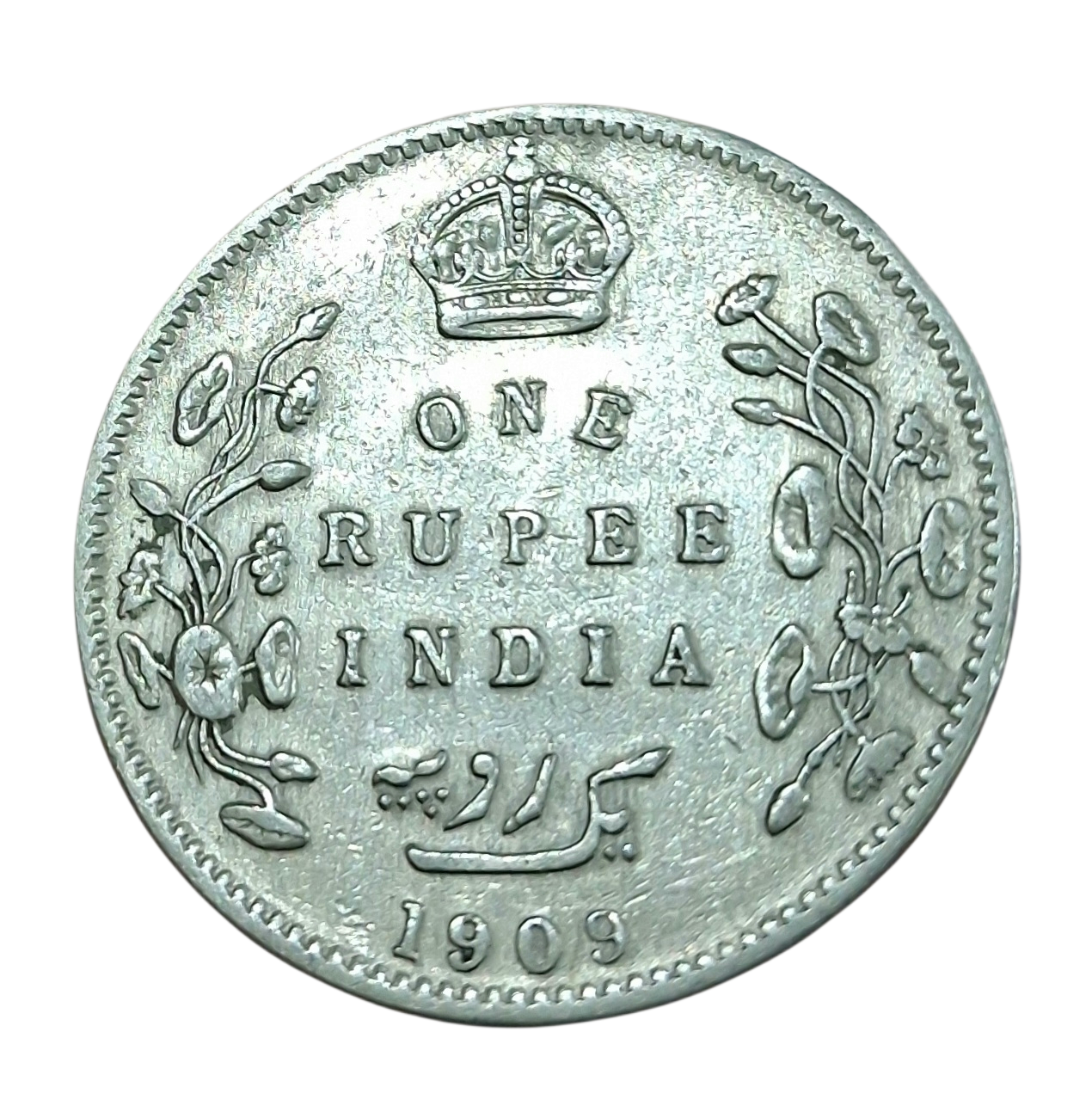 British India Silver ONE RUPEE Year 1909 King EDWARD-VII **V. SCARE** High Collectable Grade.