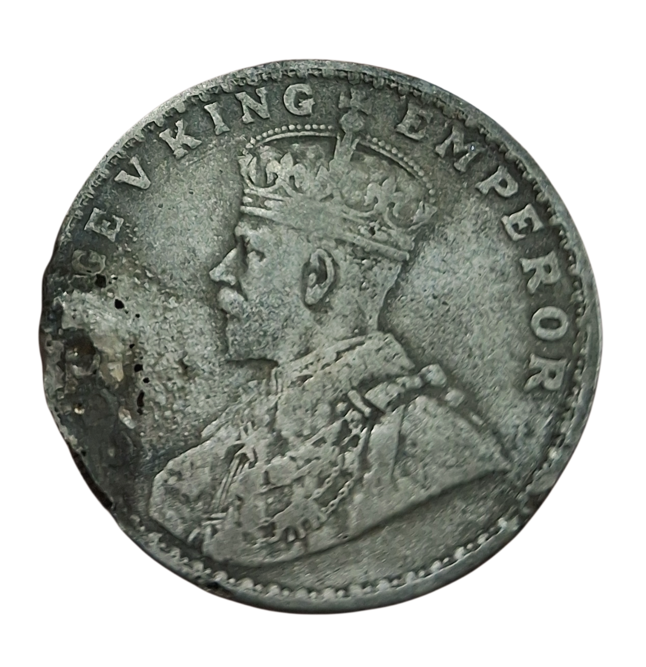 British India Silver ONE RUPEE Year 1918 King GEORGE-V in Damage Poor Condition.