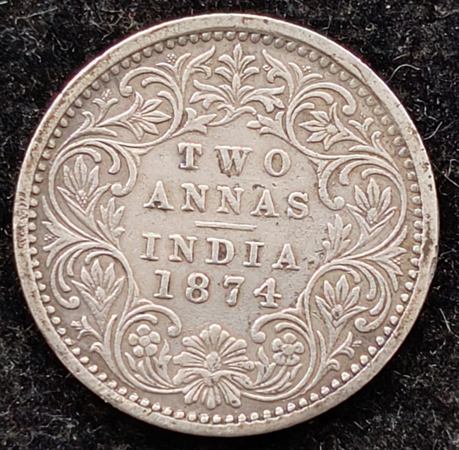 British India Two Anna -1874 Victoria Rare High Grade Coin #I-138