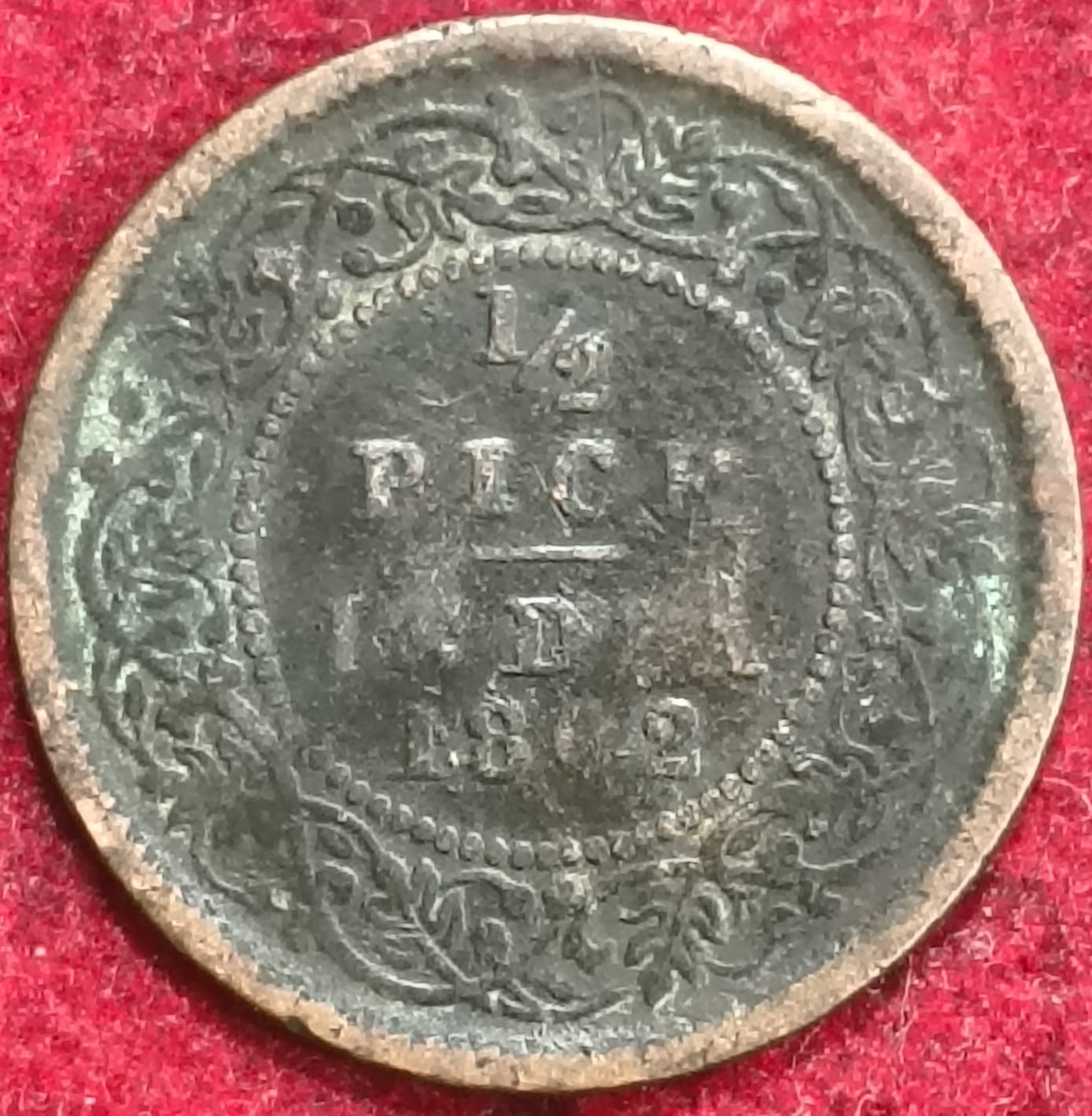 BRITISH INDIA VICTORIA 1/2 PICE 1862 RARE COIN #S-141
