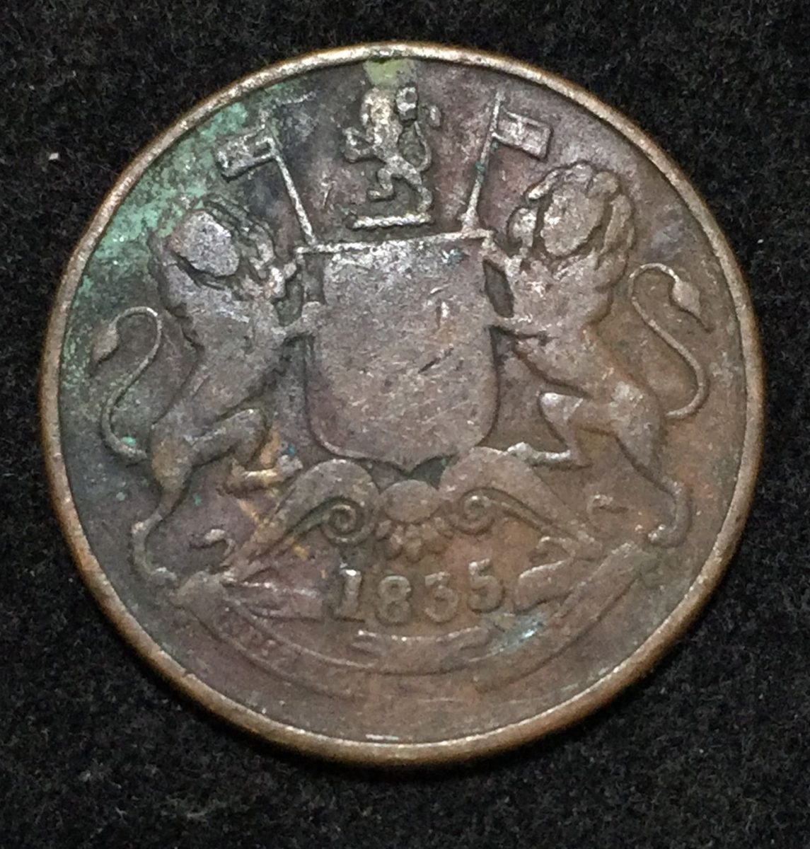 🌟 Rare 1835 India – British ½ Anna Coin