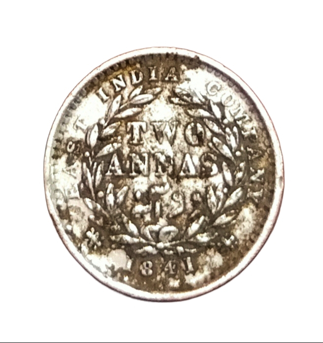 BI Silver 2 ANNA’S Year 1841 “EIC Victoria DIVIDED LEGEND “S” Incuse MADRAS Mint **RARE** High Grade