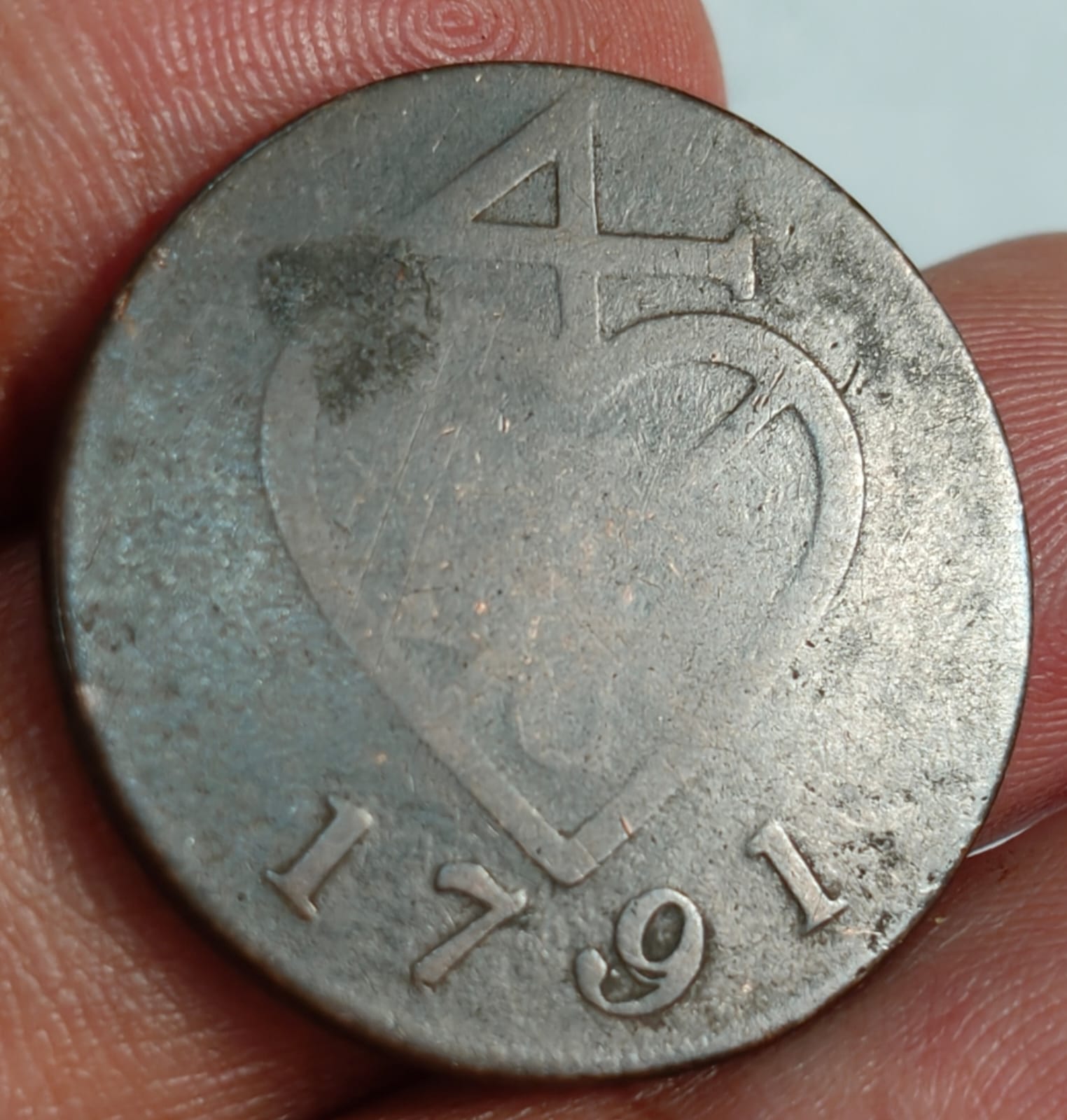Bombay Presidency British India 1791 Value 1½ Paisa (3⁄128) Weigh 9.71 g Extermaly rare coin # A-443