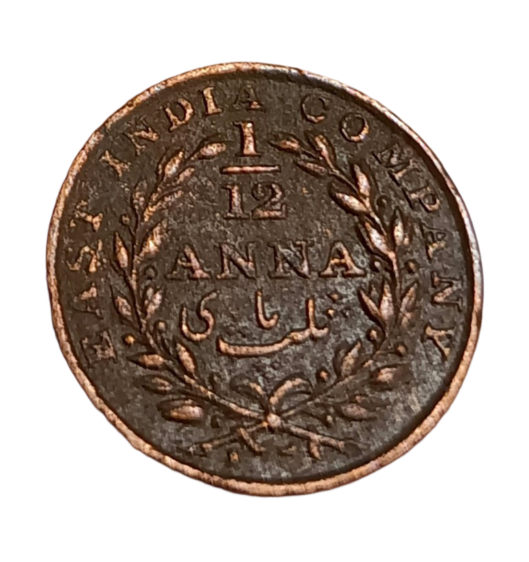 British India Copper 1/12 ANNA Year 1835 EAST INDIA COMPANY **V. SCARE** Collectable Grade.