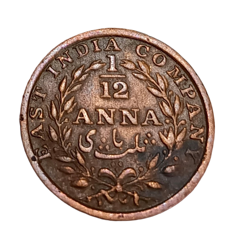🏷️ Rare 1835 British India Copper 1/12 ANNA coin