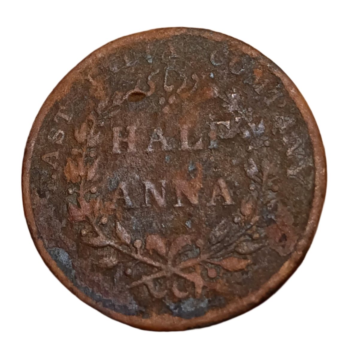 British India Copper HALF ANNA Dated 1835 “EAST INDIA COMPANY” Inverted Axis **RARE** Collectable Grade.