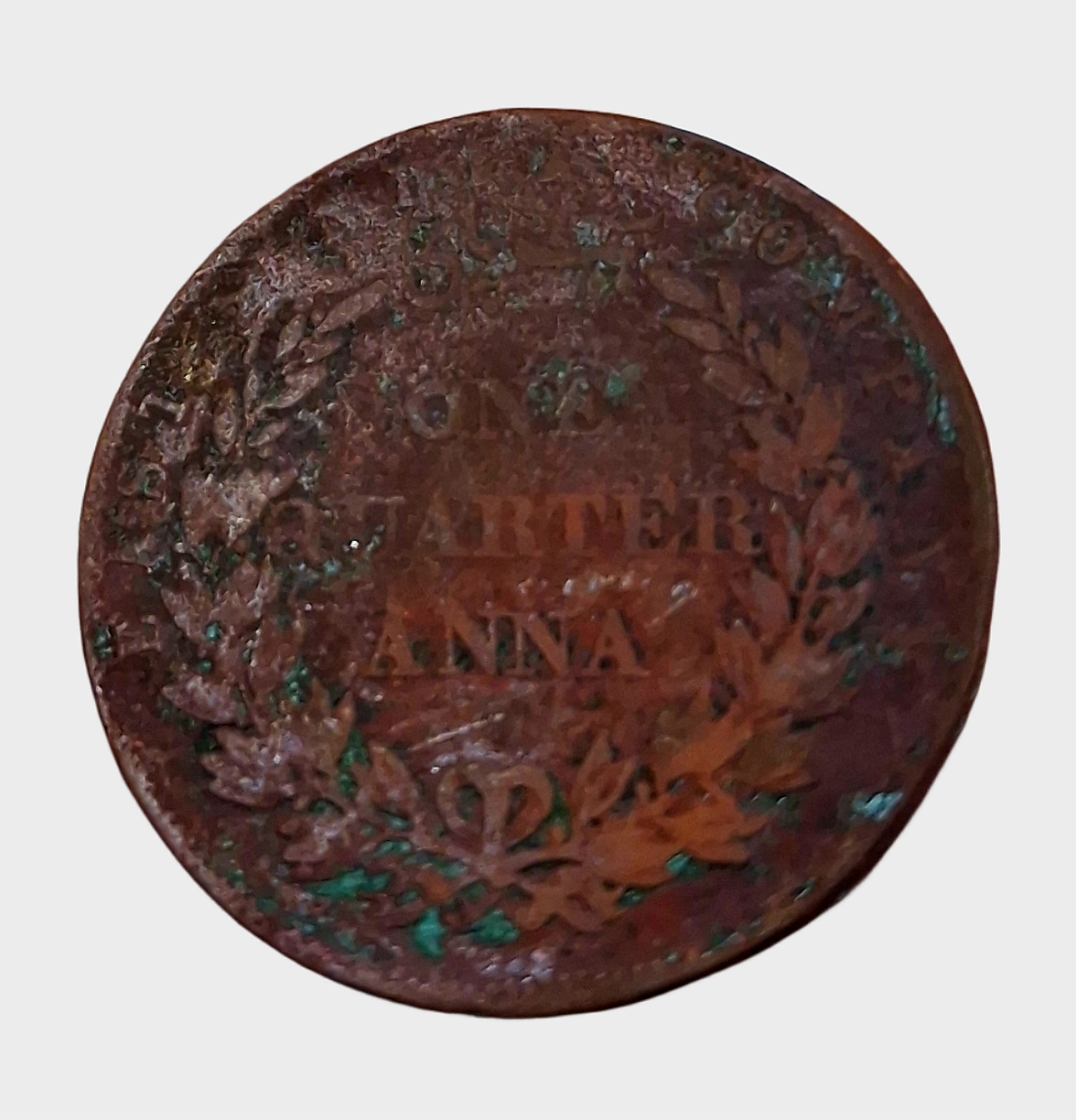 British India Copper ONE QUARTER ANNA Key Date Year 1857 Inverted Axis “EAST INDIA COMPANY” RARE Coinage in Used Condition.