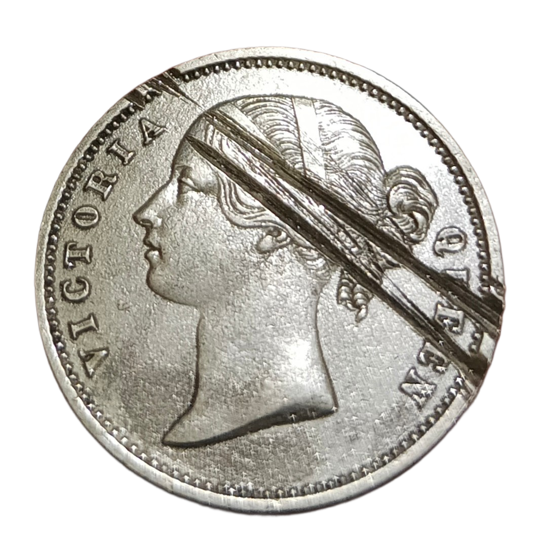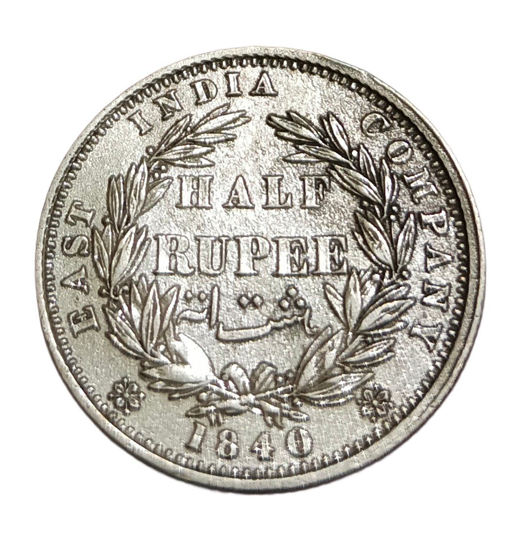 British India “EAST INDIA COMPANY” Silver 1/2 RUPEE Year 1840 Queen Victoria DIVIDED LEGEND **V. SCARE** Collectable Damaged Condition.
