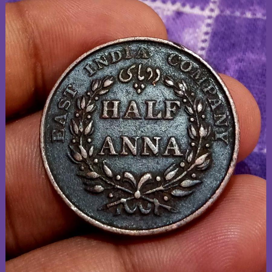 British India HALF ANNA Year 1835 EAST INDIA COMPANY **RARE Coinage** High Collectable Grade.