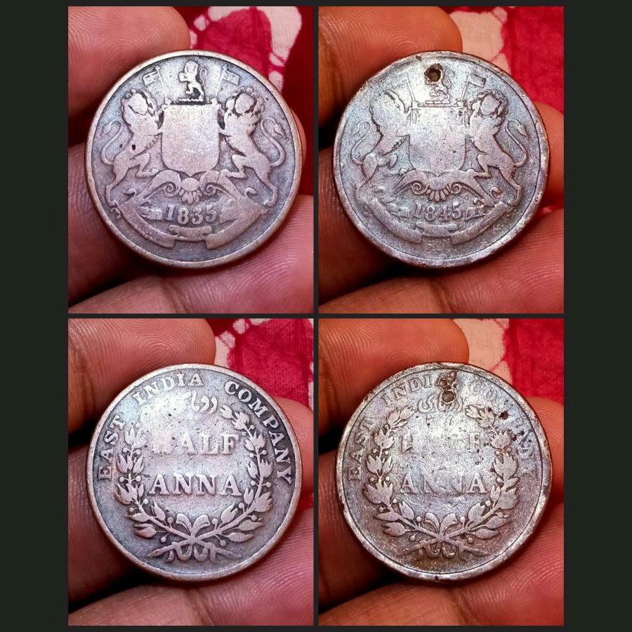 British India HALF ANNA Year’s 1835 and 1845 “EAST INDIA COMPANY” Set 2 Coins **RARE** Used Conditions.