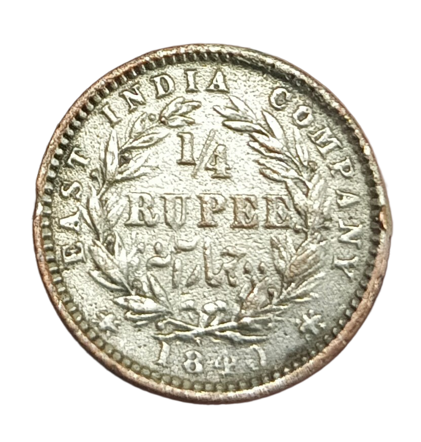 British India SILVER TOKEN 1/4 Rupee “EAST INDIA COMPANY” Year 1840 DIVIDED LEGEND Queen Victoria Old Token.