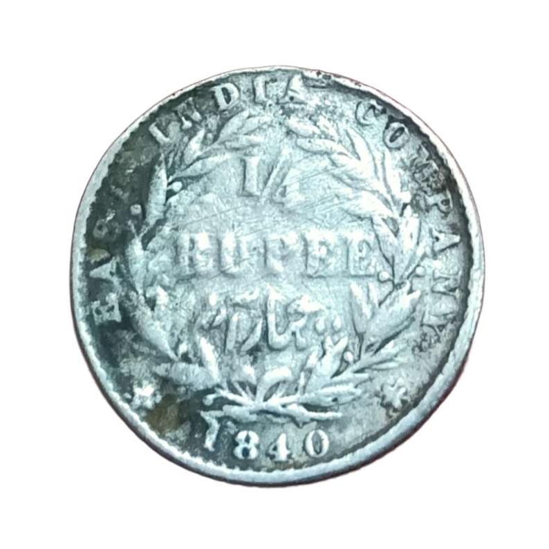 British India Silver 1/4 Rupee EAST INDIA COMPANY 1840 Queen DIVIDED LEGEND **V.SCARE** Poor Grade.