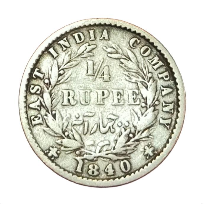 British India Silver 1/4 Rupee “EIC” Year 1840 Victoria DIVIDEND LEGEND **SCARE** Collectable.