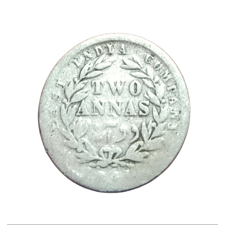 British India Silver 2 ANNA’S 1841 EAST INDIA COMPANY Divided Legend Victoria RARE Poor Grade