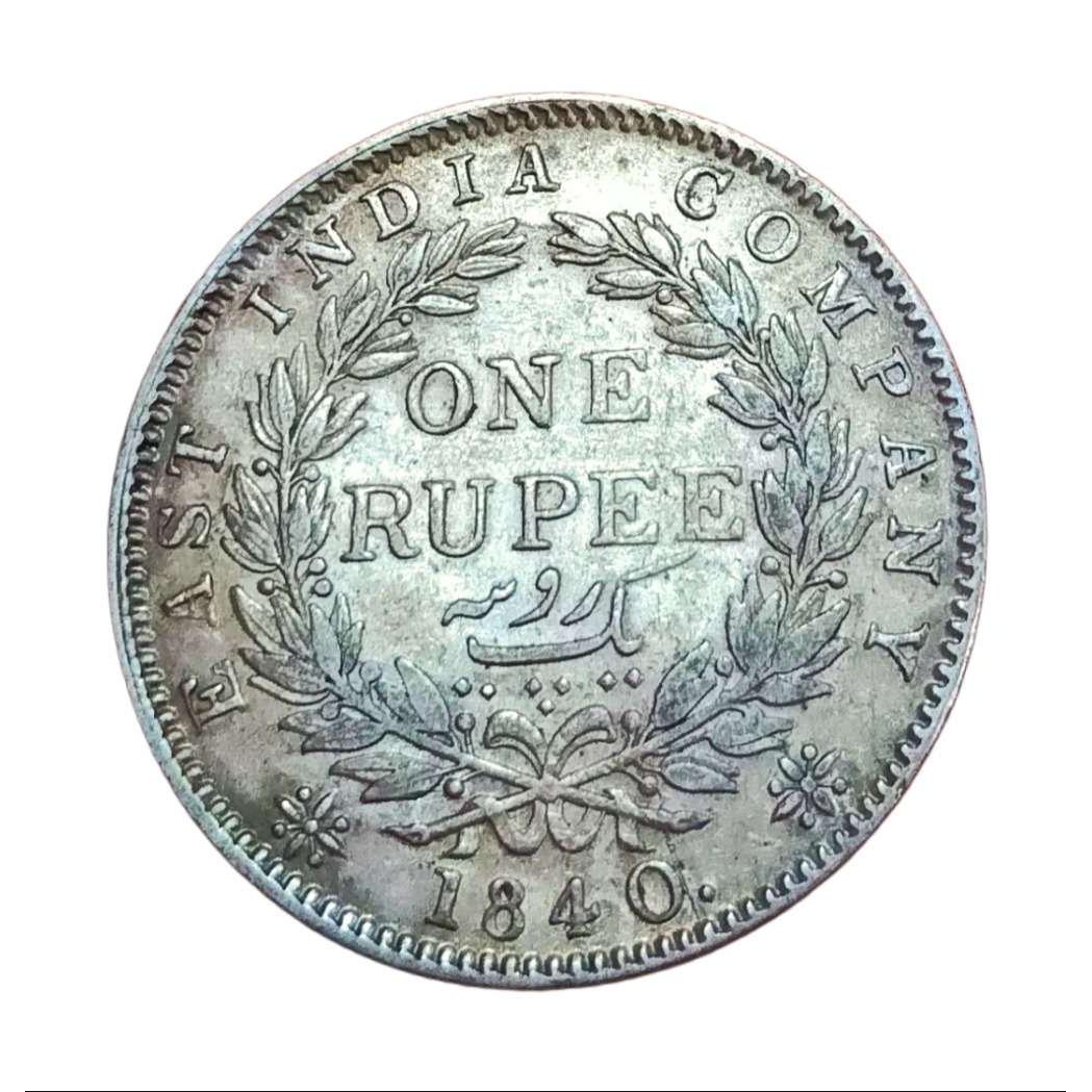 British India Silver Rupee 1840 “EAST INDIA COMPANY” Queen CONTINUOUS LEGEND **RARE** High Grade.