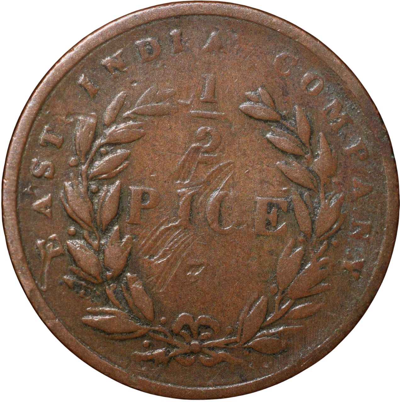 Copper 1/2 Pice of East India Company (AD 1853) of Calcutta Mint