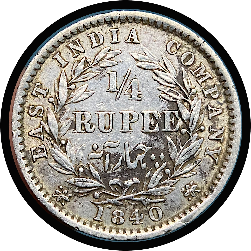 East India Company, 1840 Victoria Queen Divided Legend, Silver 1/4 Rupee, MADRAS Mint, RARE, W.W.B raised