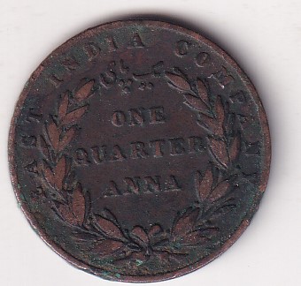 The value in English within a wreath of laurel:ONE QUARTER ANNA