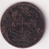 Coat of arms of the East India Company: 2 lions, St George’s cross on the crest and flags, motto on the ribbon “Auspicio Regis et Senatus Angliae” in three parts.