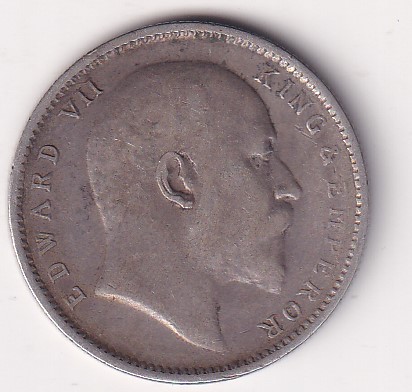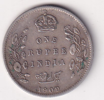 India – British 1 Rupee 1909 – Edward VII RARE SILVER COIN #17