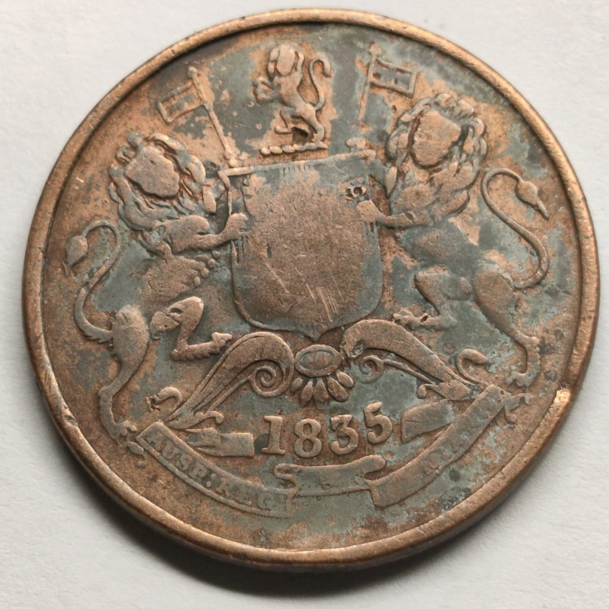 тЬи Rare Half Anna 1835 East India Company Copper Coin