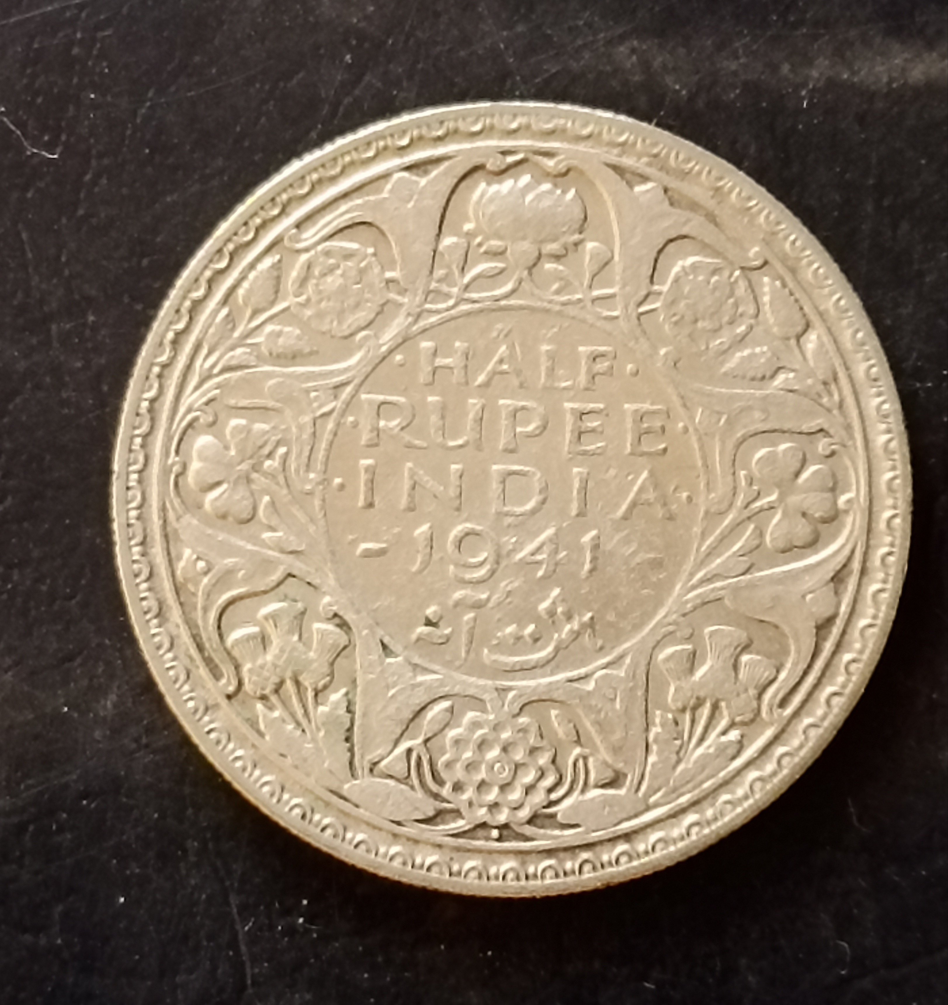 Silver British India King and emperor George vi Denominaton 1/2₹ Year 1941 Same and similar is available