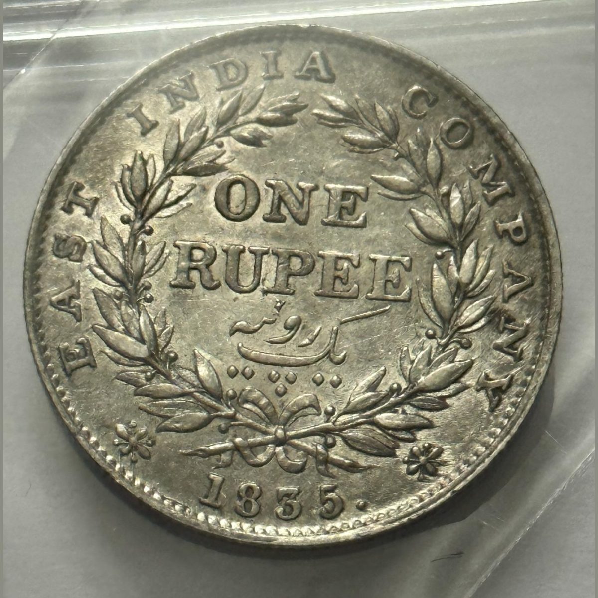 William One Rupee 1835 East India Company R.S. Variety Silver Coin High Grade