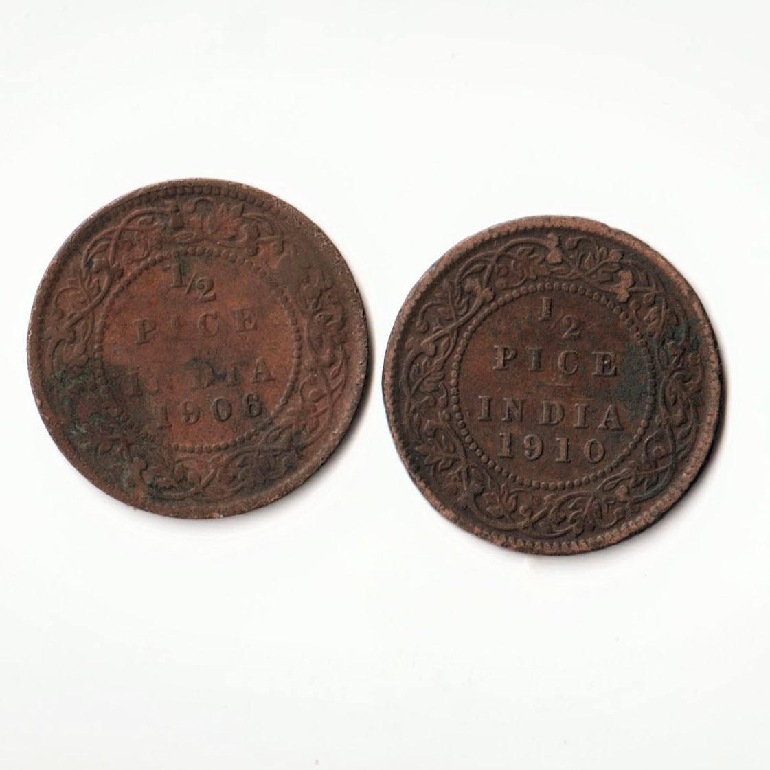 2 Coin Set Of 1/2 Pice 1906-1910 Bronze Coin of Edward VII British India Coinage