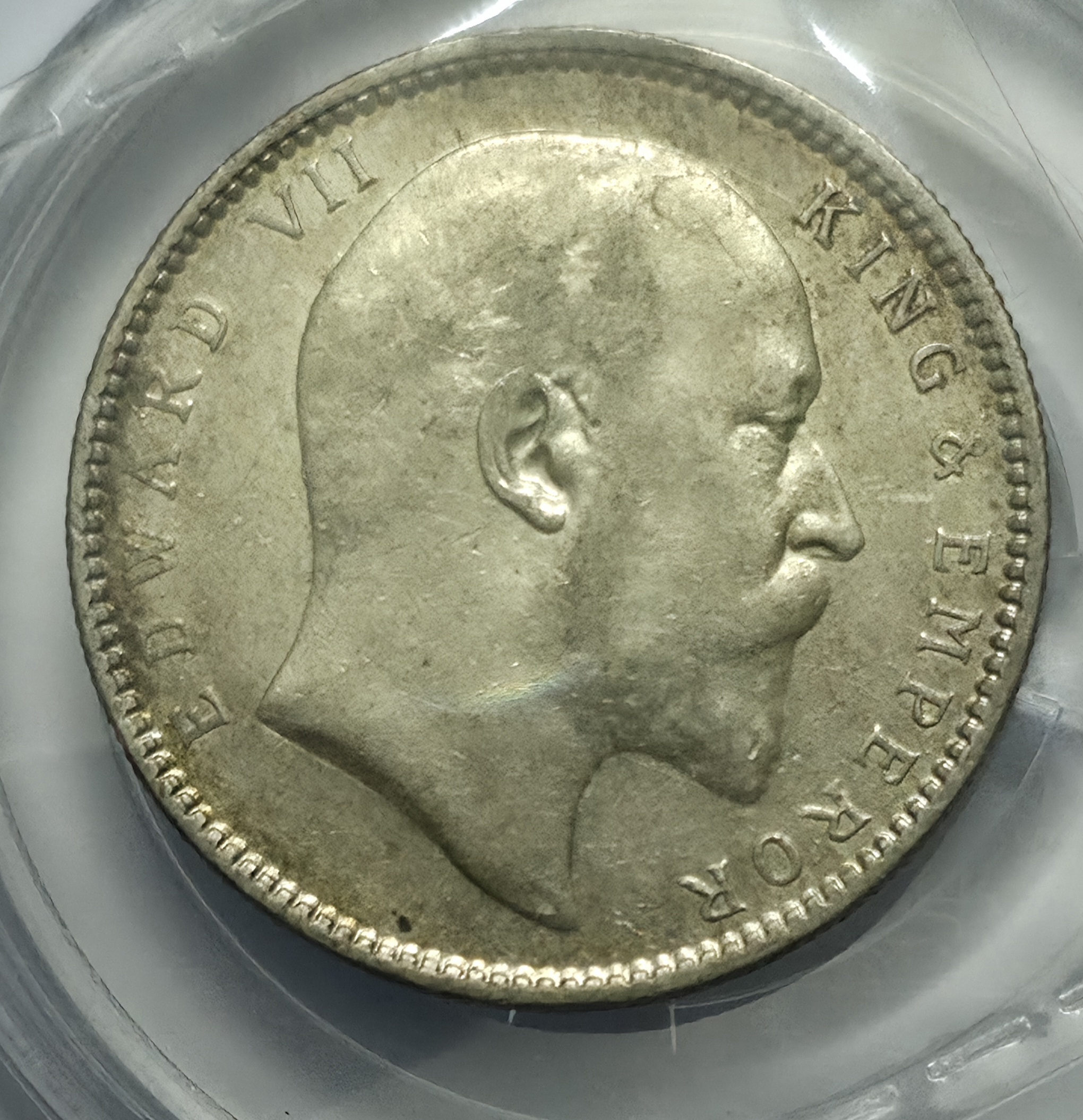 British India Edward One Rupee 1908 Silver Coin AU Grade Rare