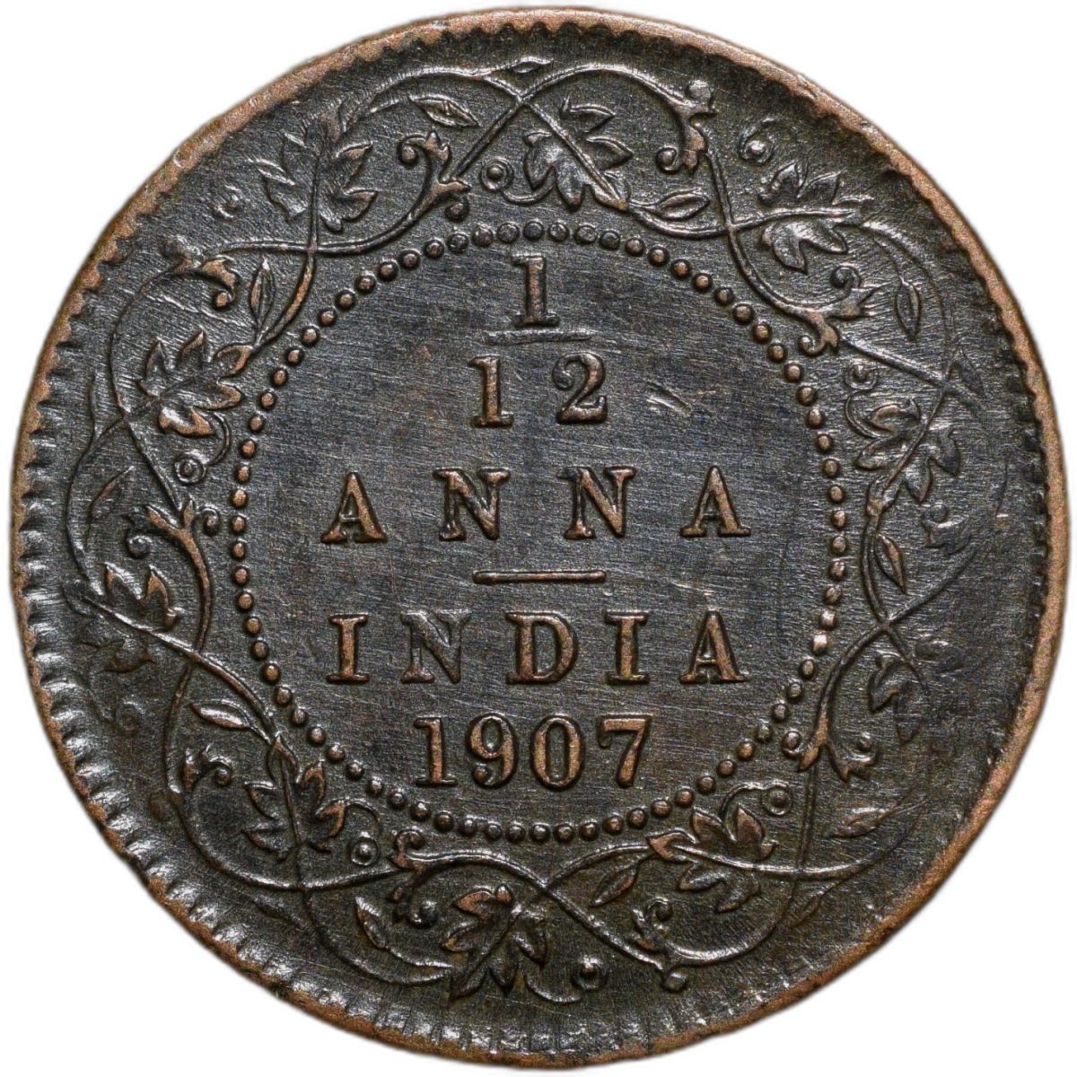 Bronze 1/12 Anna of Edward VII (AD 1907) of Calcutta Mint in Beautiful Grade
