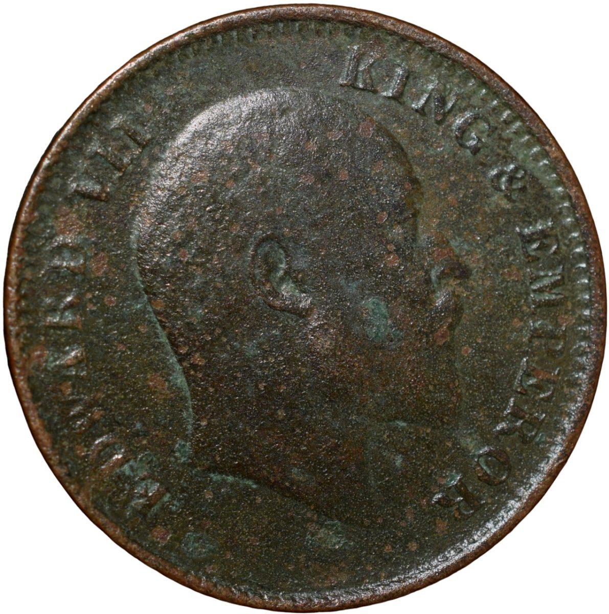 Edward VII, (AD 1907), Bronze 1/4 Anna, Calcutta Mint, Thin Plainchet, Obv: Edward VII facing Right, Inscription around, Rev: Denomination & Date, 4.34 Gms, 25.40 mm, (KM# 502), About Very Fine.