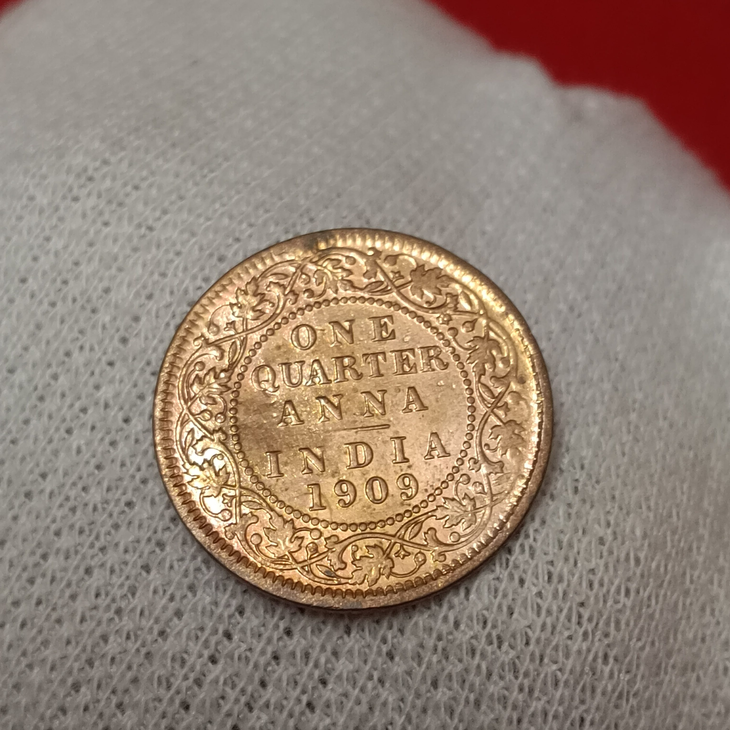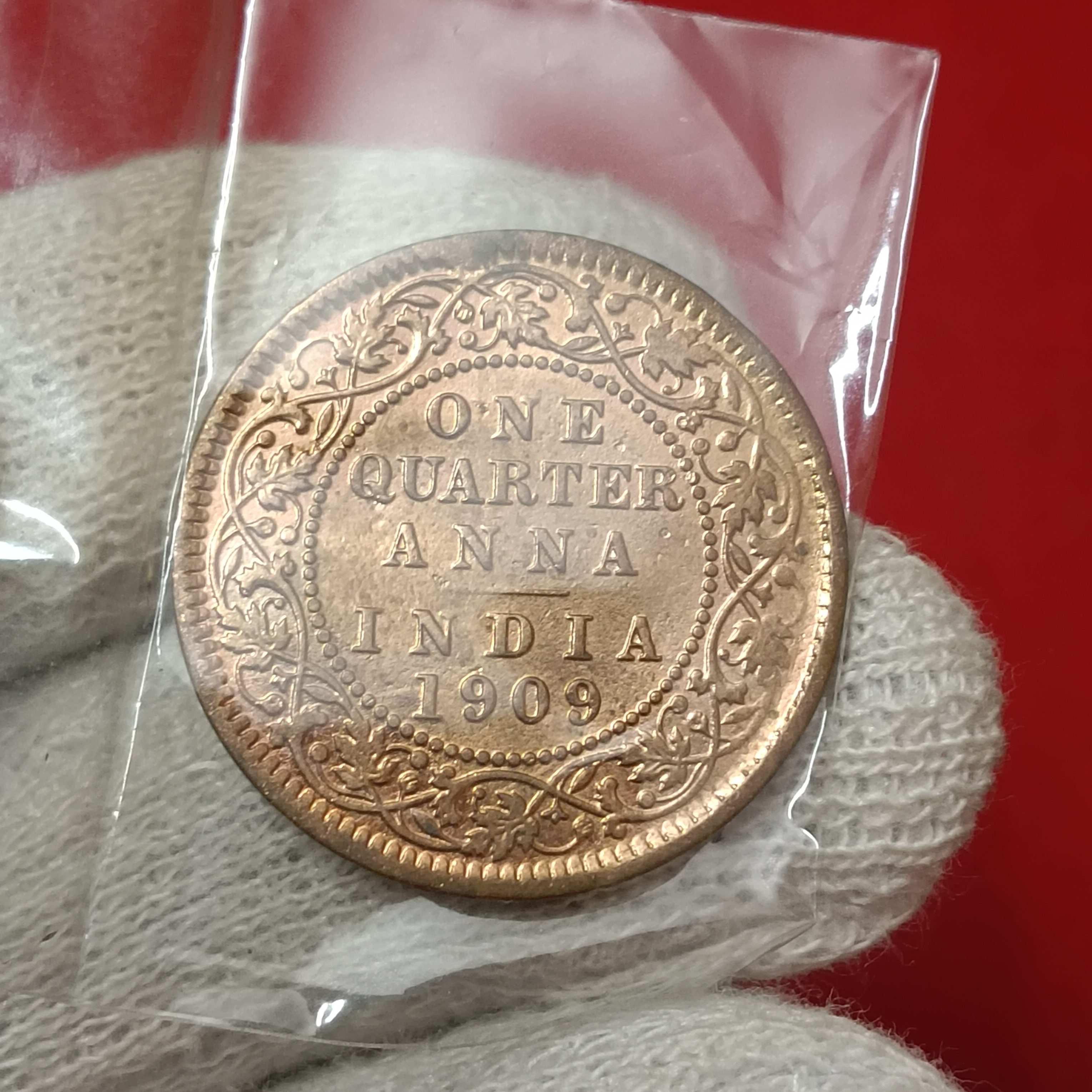- Ex Rare Edward VII One Quarter Anna Bronze Coin 1909 Year Calcutta Mint British of India