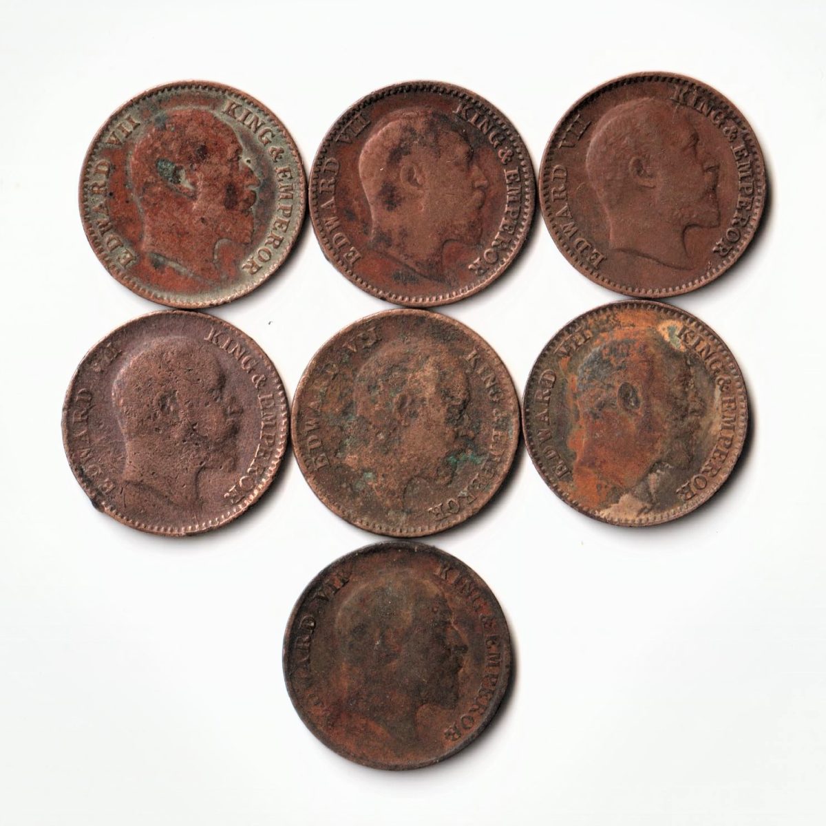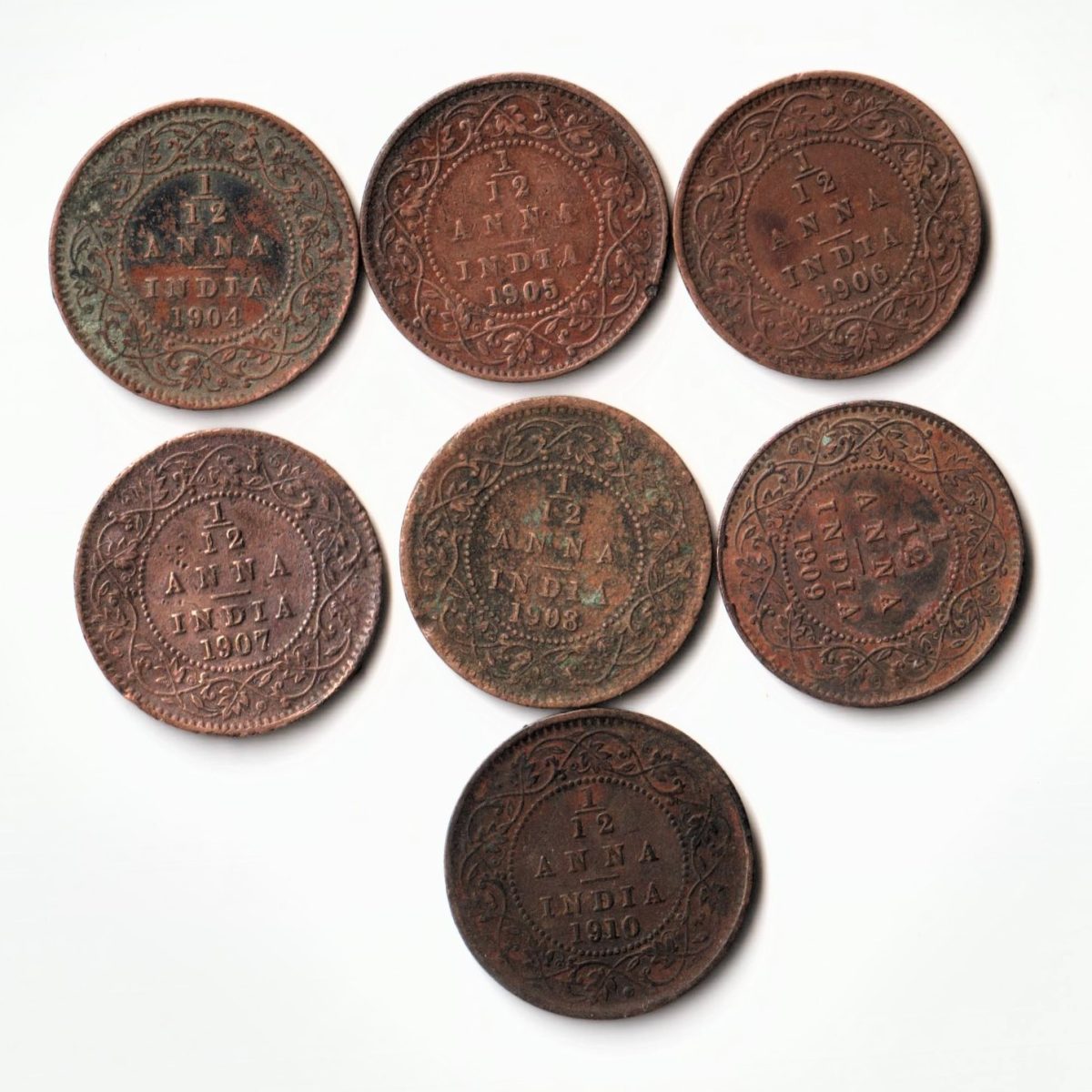 Good Grade 7 Coins Set of 1/12 Anna Different Years 1904 to 1910 Bronze Coins Of King Edward VII British India Coinage