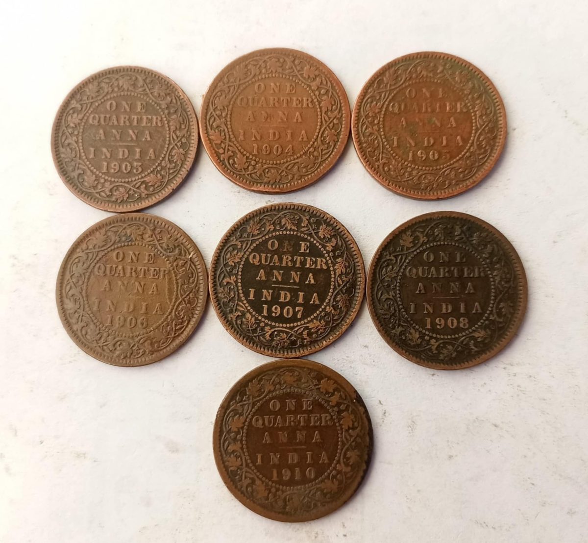 India Set of 7 piece of 7 different year king and emperor Edward VII Denomination 1 quarter anna Metal copper