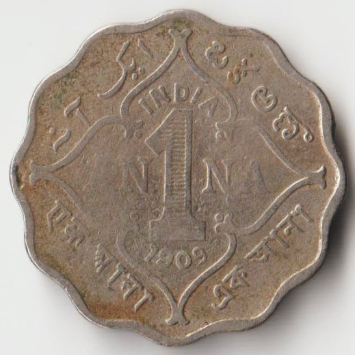 Extremely Rare One Anna 1909 Bombay Mint Copper-Nickel Coin of King Edward VII British India Coinage