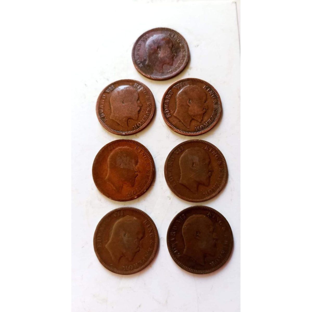 Rare rare Set of 7 pieces of 7 different year King and emperor Edward VII Denomination 1 ₹ Metal cop