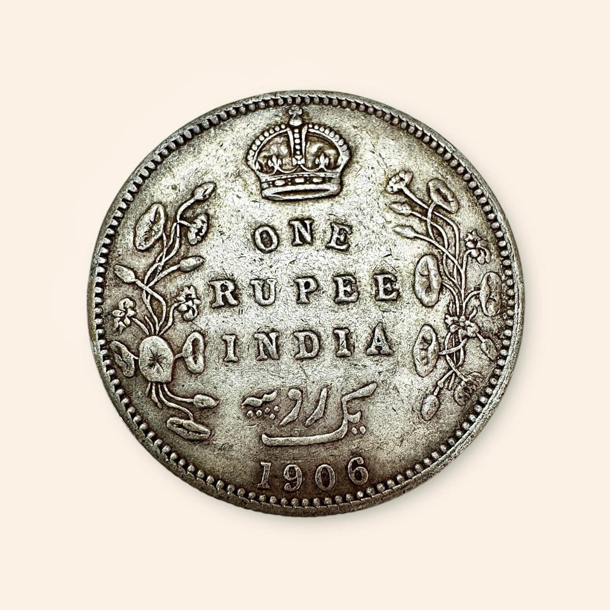 RE 1 BRITISH INDIA KING & EMPEROR EDWARD VII Rupee Silver year 1906 Unique and Rare