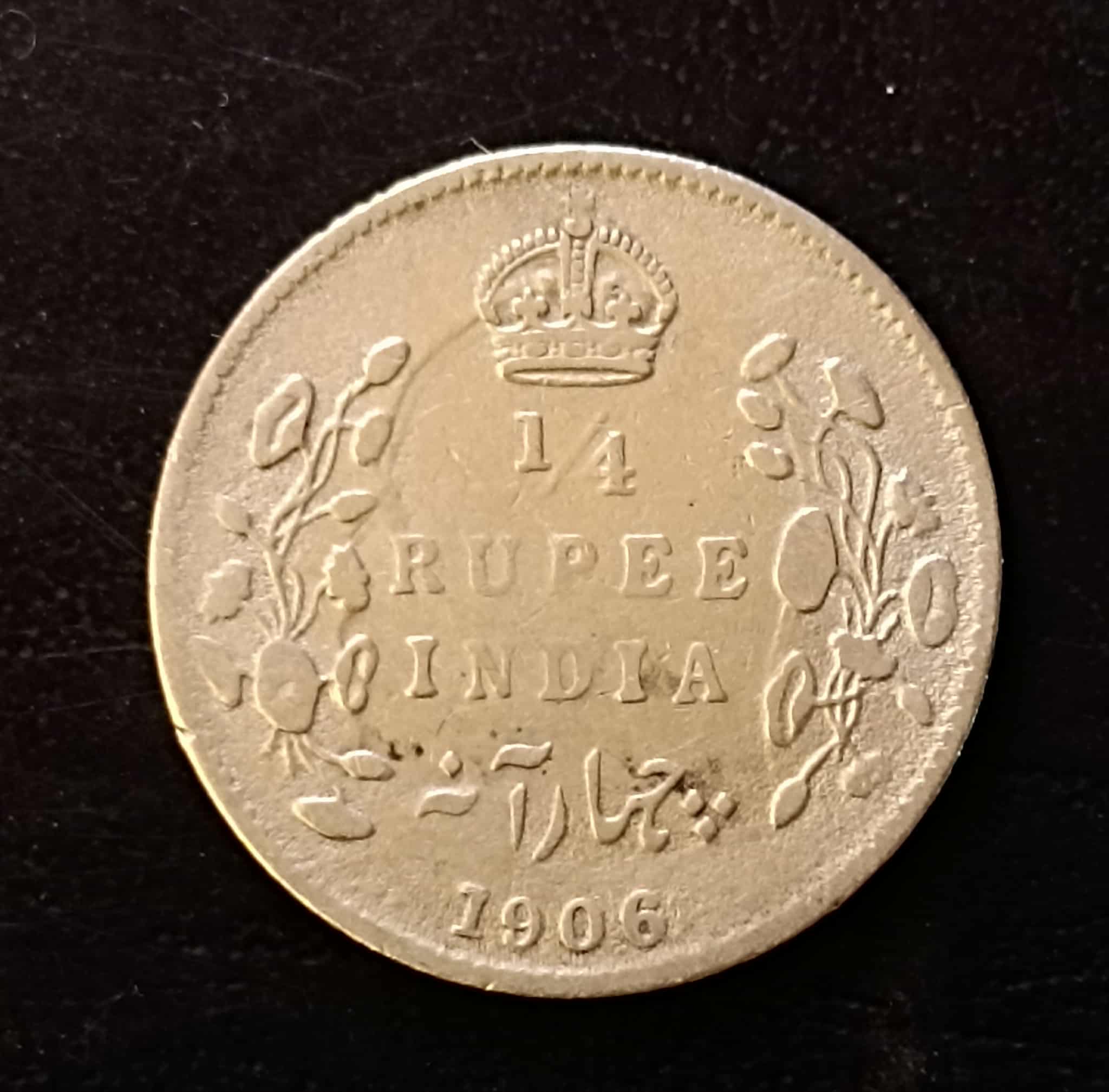 Silver British India King and emperor Edward VII Denominaton 1/4₹ Year 1906 Same and similar piece available