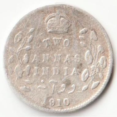 Two Anna 1910 of King Edward VII Silver Coin of British India