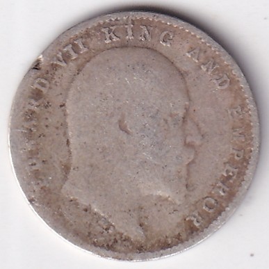 Two Annas 1905 King Edward Silver Coin Ex Rare