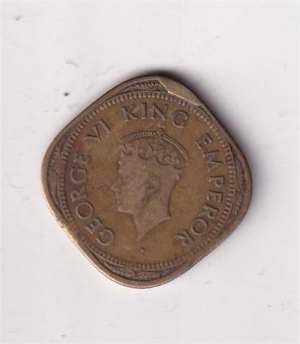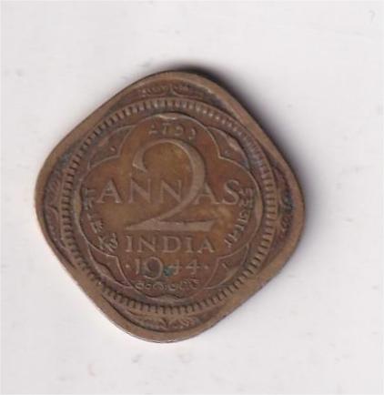 ERROR EXTRA METAL 2 ANNA 1944 GEORGE VI BRITISH INDIA COIN#I-283