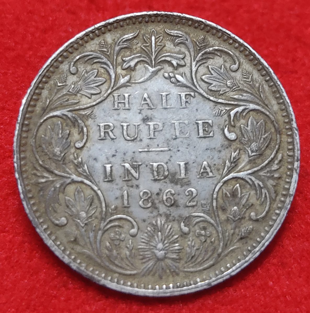 EXTREMELY RARE SILVER HALF RUPEE VICTORIA EMPRESS 1862 WEIGHT 5.83 GMS IN EXCELLENT CONDITION