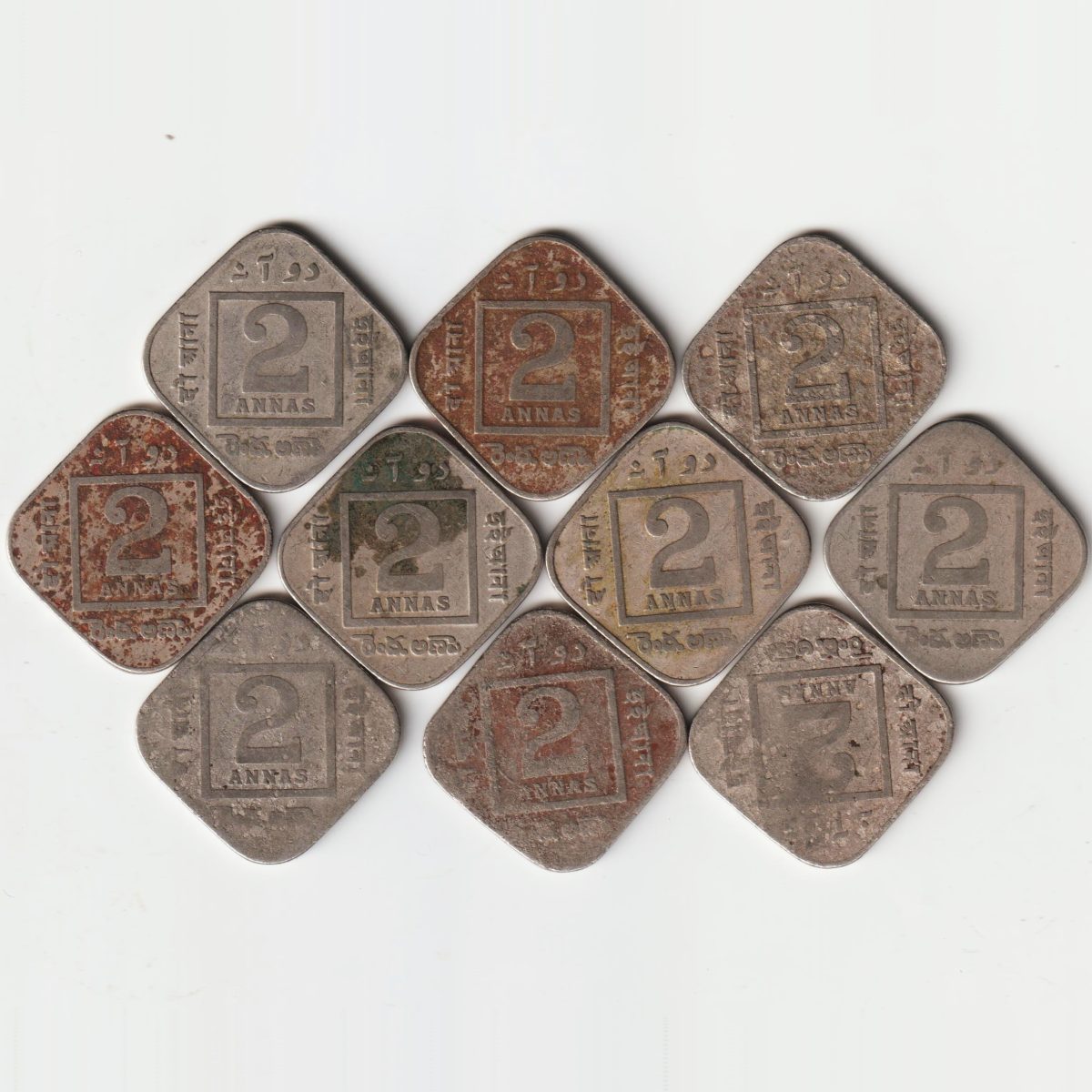 10 Coins Lot of 2 Anna George V King Emperor British India Coinage at Lowest Price Deal Just 70 Rs Per Coin Only
