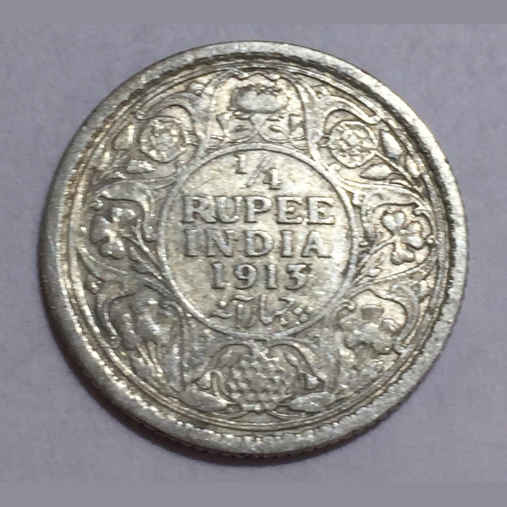 1913 India – British ¼ Rupee – George V King Emperor Silver Rare Coin #Z-145