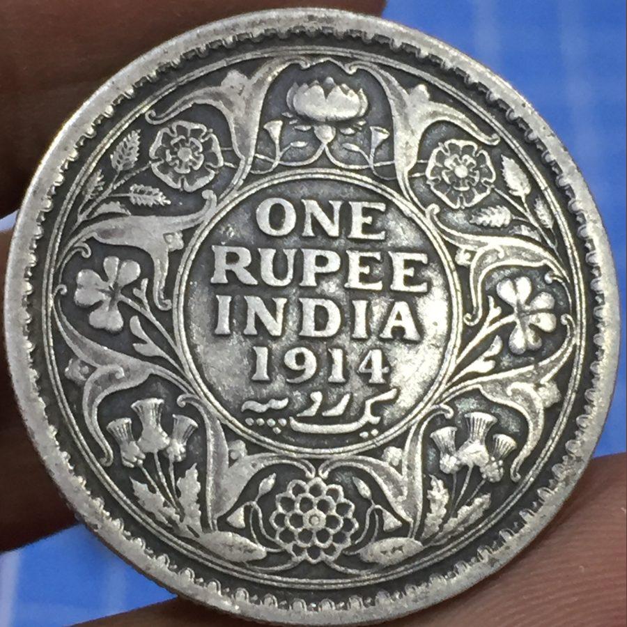 🌟 Genuine 1914 George V Silver One Rupee coin