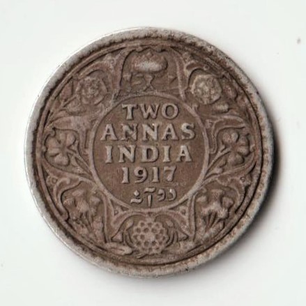 2 Anna 1917 Silver Coin of King George V British India Coinage